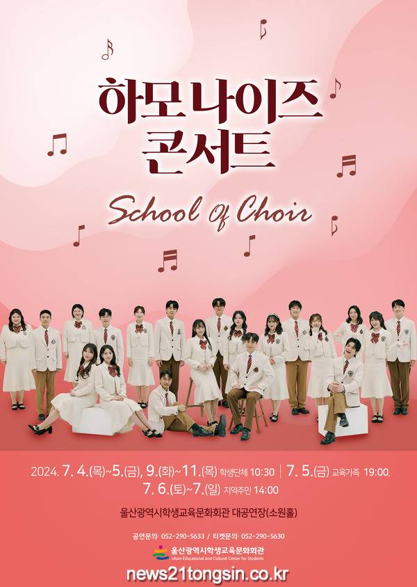 (뉴스21통신/우정석기자) = 울산 중구 울산학생교육문화회관(관장 김현미)은 7월에 ‘하모나이즈 콘서트 스쿨 오브 콰이어(School of Choir)’와 코믹 마임 서커스 ‘코비&피터’ 기획공연을 선보인다.