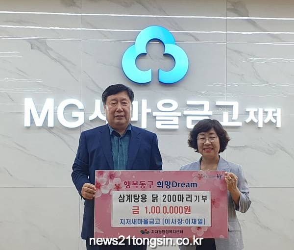 (뉴스21통신) 경동하기자 = 동구 지저새마을금고(이사장 이재일)는 9일, 동 행정복지센터에 삼계탕용 닭 200마리(100만원 상당)를 전달했다.