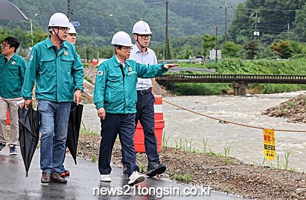 이철우 경상북도지사는 9일 경상북도가 추진하고 있는 예천 한천 재해복구 사업장의 안전관리와 추진 현황을 점검하고 호우로 인해 대피한 주민을 만나 애로사항을 청취했다.