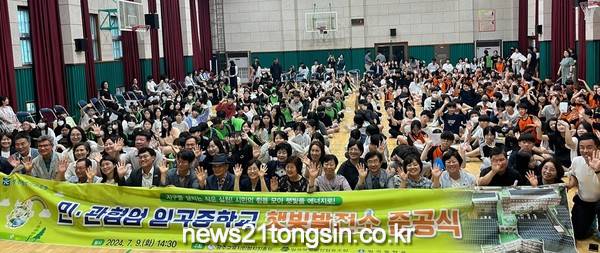 광주교육시민협치진흥원은 9일 일곡중학교에서 김진구 시민협치진흥원장, 일곡중학교 김주신 교장, 일곡햇빛발전협동조합 최미옥 이사장, 지역주민, 학생 등 500여 명이 참석한 가운데 ‘시민참여형 햇빛발전소’ 준공식을 개최했다.