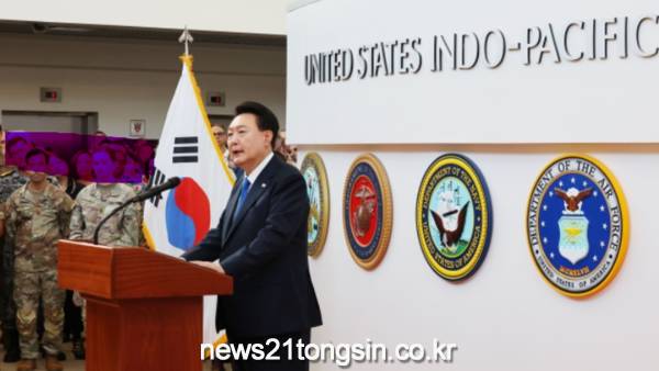 미국을 방문 중인 윤석열 대통령은 9일(현지 시각) 하와이 호놀룰루의 인도·태평양사령부를 방문했다. 한국 대통령의 인태사령부 방문은 29년 만이다.윤 대통령은 이날 장병 격려사에서 “한국 현직 대통령으로서 29년 만에 인태사령부를 방문한 것은 엄중한 국제 정세와 한반도 안보 상황 속에서 철통 같은 한미동맹과 연합 방위 태세를 더욱 확고히 다지기 위한 것”이라며 “인태사령부는 한미 연합방위태세를 지원하고, 한반도 유사시 미 증원 전력의 제공·전개에 중심적 역할을 수행하는 한미동맹의 대들보”라고 했다.윤 대통령은 북한과 러시아의 군사 협력을 비판하며 “공고한 공약과 협력에 토대를 둔 강력한 능력이야말로 가치와 규범에 기반한 역내 질서를 굳건히 수호하는 원동력”이라며 “그 근간에 바로 인태사령부가 있다”고 했다. 그러면서 “장병들의 헌신과 노력이 한미동맹과 한미일 협력, 그리고 국제사회 연대를 이끄는 진정한 힘”이라며 “사무엘 파파로 사령관의 지휘 지침인 ‘압도적 승리(Prevail)’로 인태사령부가 늘 전장을 지배하고 승리하는 사령부가 될 것이라고 확신한다”고 했다.윤 대통령의 이날 격려사는 인태사령부 소속 400여명의 장병 앞에서 이뤄졌다. 장병들은 윤 대통령이 격려사를 위해 등장하자 환호했고, 윤 대통령은 손을 흔들어 화답했다. 인태사령부 소속 주요 장성들도 일렬로 도열해 윤 대통령의 발언을 경청했다.