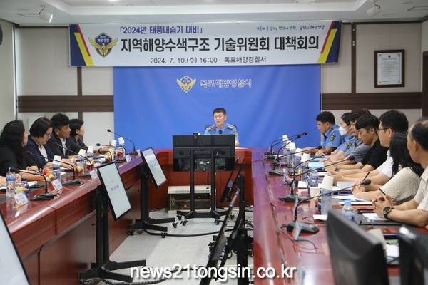 [뉴스21통신 박민창기자] 목포해양경찰서는 지난 10일 소회의실에서 2024년 태풍 내습기를 대비해 '지역 해양수색구조기술위원회'를 개최했다.