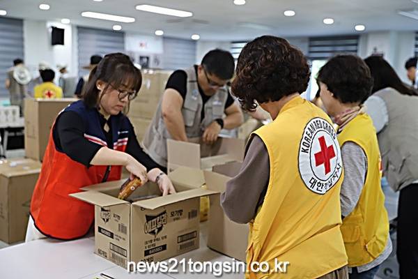 경상북도와 경상북도종합자원봉사센터, 대한적십자사 경북지사, 경상북도개발공사는 11일 경북적십자사 3층 앙리 뒤낭홀에서 관계자와 적십자봉사회 예천지구협의회 회원이 참석한 가운데 도내 취약계층 지원을 위한 여름나기 키트 제작 행사를 했다.