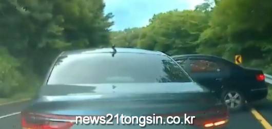 피해 차량 운전자가 휘청거리며 내리는 사이, 가해 차량이 도망갔다.