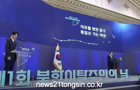 윤 대통령은 북한 정권이 자유를 향한 발걸음을 막을 수 없다며, 헌법상 대한민국 국민인 탈북민들을 국가가 보호하겠다고 강조했다.