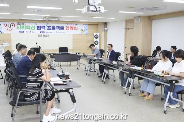 광주 동구는 지난 10일 동구의 사회적 가치 창출에 앞장서고 있는 12개 사회적경제기업과 ‘별별동구 사회혁신 협력 프로젝트 협약식’을 진행했다고 밝혔다.