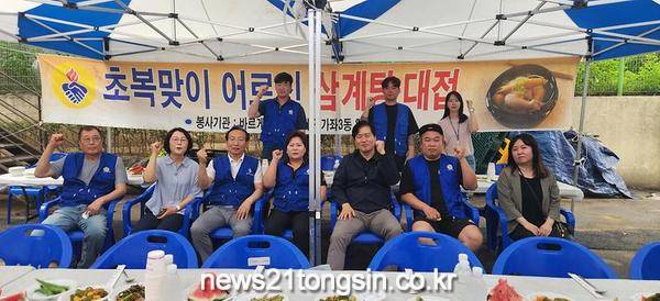 이날 행사는 초복을 맞아 무더운 날씨로 힘든 시기를 보내고 있을 어르신들과 관내 치안 유지를 위해 애써주는 지구대원들에게 삼계탕을 대접함으로써 이웃의 따듯한 정을 함께 나누기 위해 마련됐다. 삼계탕 외에 오이냉국, 전, 과일 등 다양한 음식을 준비하여 참석하신 어르신, 지구대원들 한분 한분에게 정성스럽게 음식을 대접했다.