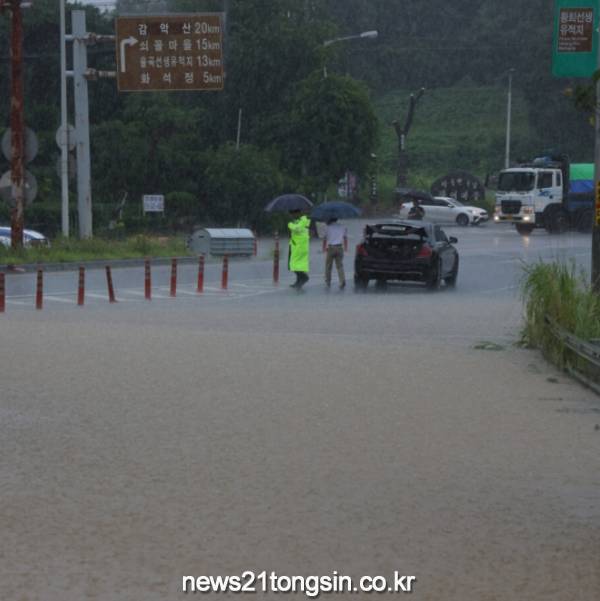 한편, 기상청은 17일 오전 8시25분을 기해 고양 등 경기 9곳에 호우주의보를 발효한다고 밝혔다. 해당 지역은 고양·성남·부천·안양·시흥·광주·광명·양평·과천이다. 호우주의보는 3시간 강우량이 60㎜ 또는 12시간 강우량이 110㎜ 이상 예상될 때 발효된다. 우산을 써도 무릎 아래가 다 젖을 정도다. 앞서 남양주 등 8곳에는 호우경보, 하남 등 2곳에는 호우주의보가 내려진 상태다.
