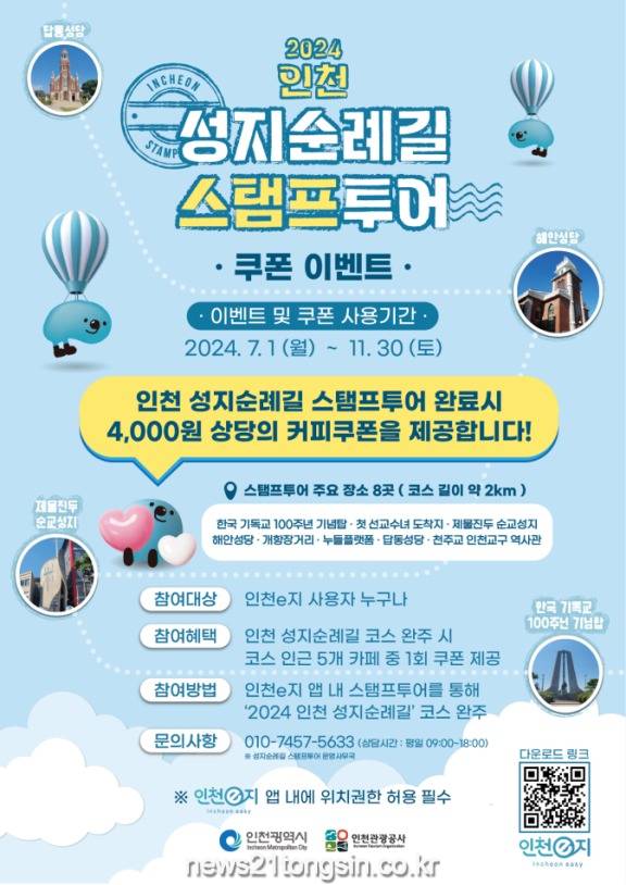 인천광역시는 7월부터 11월까지 인천관광공사와 협력해 개항장 일대 종교·역사 관광자원을 활용한‘인천 성지순례길 모바일 스탬프투어’를 운영한다고 밝혔다.