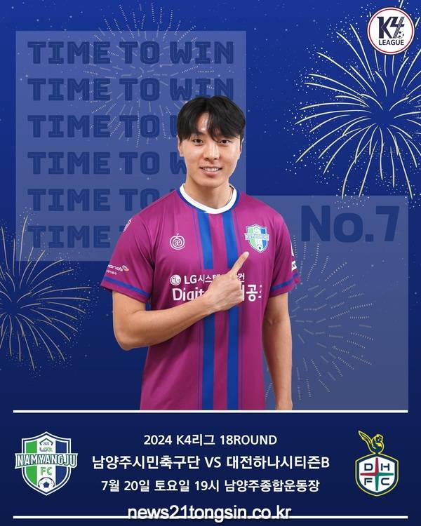 남양주시민축구단(이하 남양주FC)이 오는 20일 오후 7시 남양주종합운동장에서 대전하나시티즌 B팀 상대로 K4리그 18라운드 경기를 치른다.