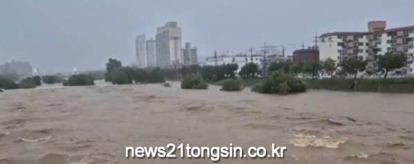 한강홍수통제소는 18일 오전 8시40분을 기해 경기도 오산시 탑동대교 일대에 홍수경보를 발령했다. 강우는 105㎜를 기록했으며, 현재 수위는 경보(4m)을 넘긴 4.96m이다.