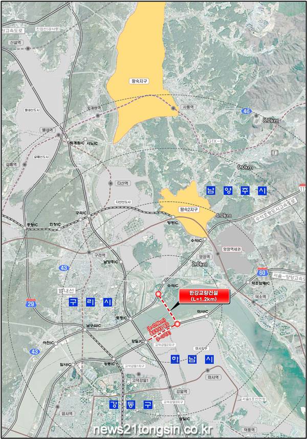 앞서 수석대교는 정부의 ‘3기 신도시, 선 교통·후 입주’ 정책 실현을 위해 2020년 12월 왕숙 신도시 광역교통개선대책으로 확정됐으나, 그간 하남시는 미사강변도시 선동IC 인근 교통정체를 이유로 수석대교 건설을 반대해 왔다.