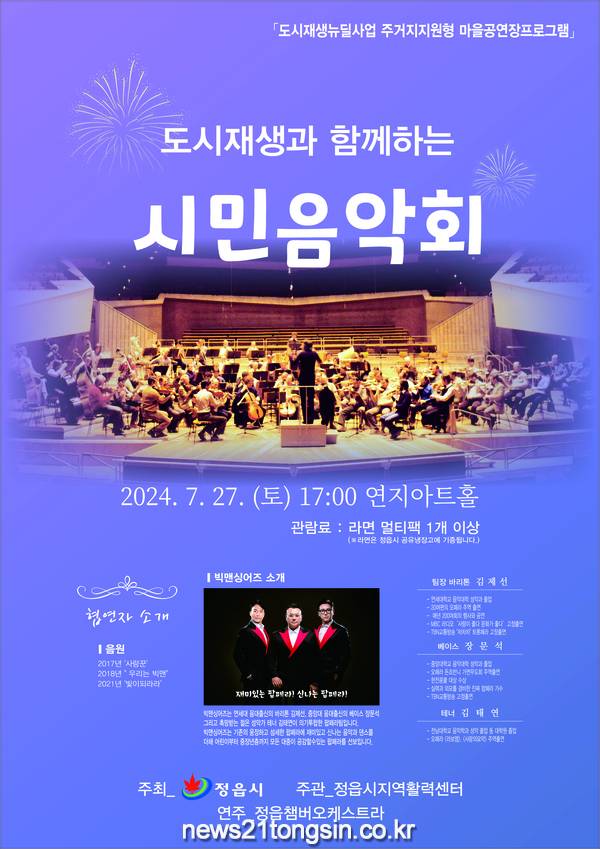 이어 7월 27일에는 ‘정읍 챔버오케스트라와 함께하는 시민을 위한 음악회’가 열린다.