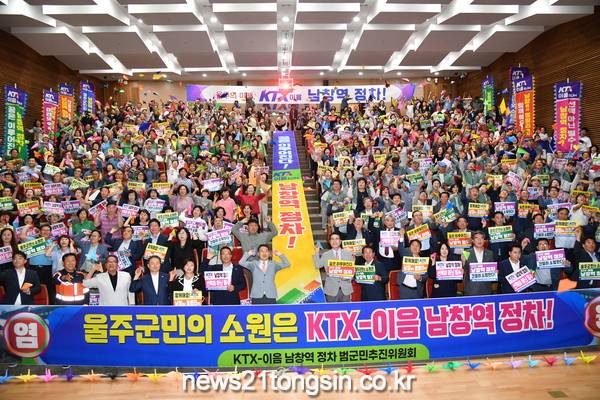 (뉴스21통신/우정석기자) = 울산시 울주군이 22일 군청 알프스홀에서 ‘KTX-이음 남창역 정차 범군민추진위원회’ 출범식을 가졌다.