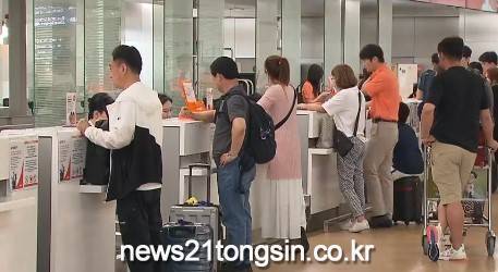 오늘(22일) 제주항공의 인천발 58편 가운데 15분 이상 지연됐거나 지연예정인 비행기는 48편, 80%가 넘는다.