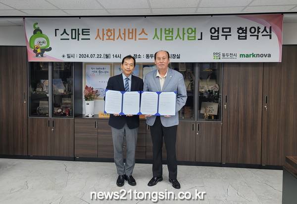 동두천시(시장 박형덕)는 22일, 주식회사 마크노바와 ‘스마트 사회서비스 시범사업’을 위한 업무 협약을 체결했다.
