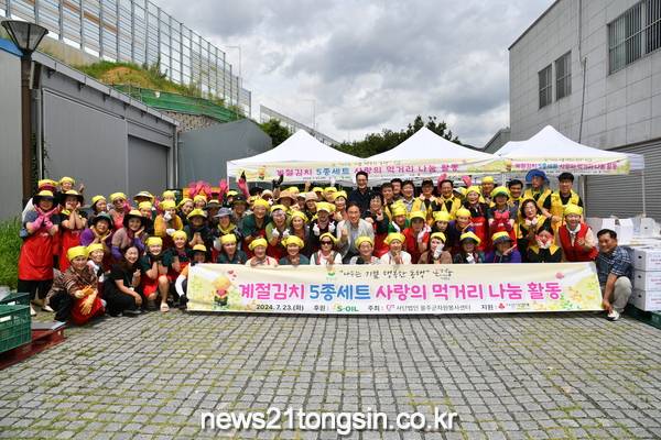 (뉴스21통신/우정석기자) = (사)울주군자원봉사센터(이사장 손덕현)가 23일 울주군 범서읍 행정복지센터에서 S-OIL(주)의 후원으로 계절김치 5종 세트 사랑의 먹거리 나눔 자원봉사활동을 실시했다.