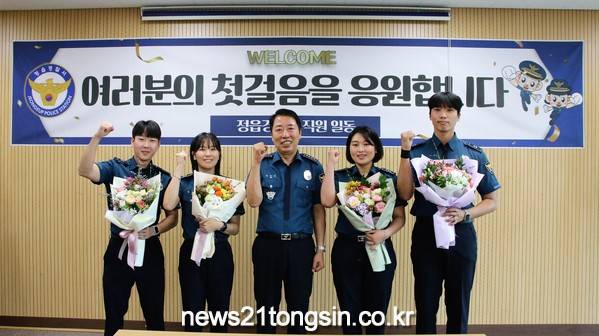 정읍경찰서는 지난 22일 경찰서 3층 두승산홀에서 제314기 신임경찰관 경장 김동희(특채), 순경 박현호, 순경 김지원, 순경 장형준 총 4명을 따뜻한 마음으로 맞이하는 환영식을 가졌다.