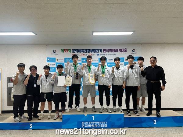 (뉴스21통신/우정석기자) = 울산 울주군 울산상업고등학교(교장 이온우) 사격부는 제53회 문화체육관광부 장관기 전국 학생사격대회 남고부 10M 공기소총 경기에서 한국 주니어 신기록을 세우며 단체전과 개인전 우승을 차지했다.
