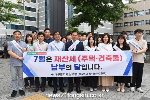 (뉴스21통신) 황태원기자 = 대구 남구는 24일 남구청네거리에서 2024년도 정기분 재산세 납부의 달을 맞아 지방세 납부 홍보 캠페인을 실시했다.
