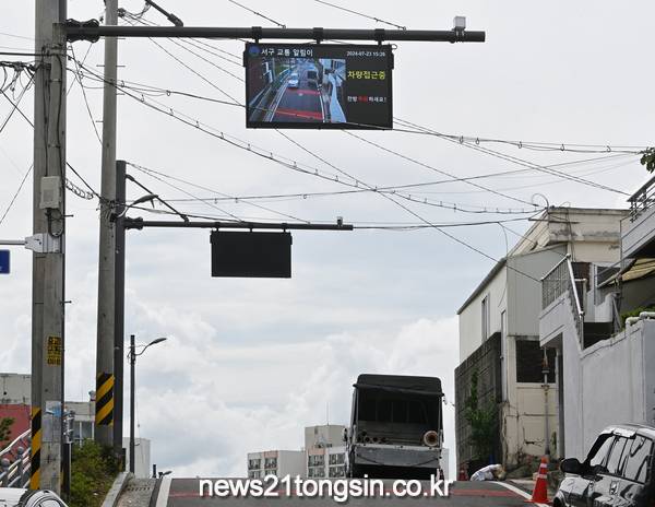 서구는 올해 예산 7000만원을 확보해 반대 방향 오르막길 상황을 실시간 영상으로 촬영하고 LED 전광판으로 안내하는 스마트 반사경을 설치했다. 이번 사업을 통해 운전자 시야확보가 어려웠던 교통 사각지대를 해소함으로써 보행자 및 운전자 안전에도 파란불이 켜졌다.
