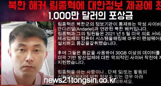 미국 당국이 북한 국적 해커 '림종혁'의 사진을 공개하고, 현상 수배한다고 밝혔다.