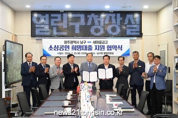 광주 남구(구청장 김병내)가 관내 소상공인의 경영 안정화 차원에서 금융권과 협력해 각종 정책사업 추진에 나서고 있는 가운데 관내 소재 새마을금고와 희망대출 지원 업무 협약을 맺고 추가 지원에 나선다.