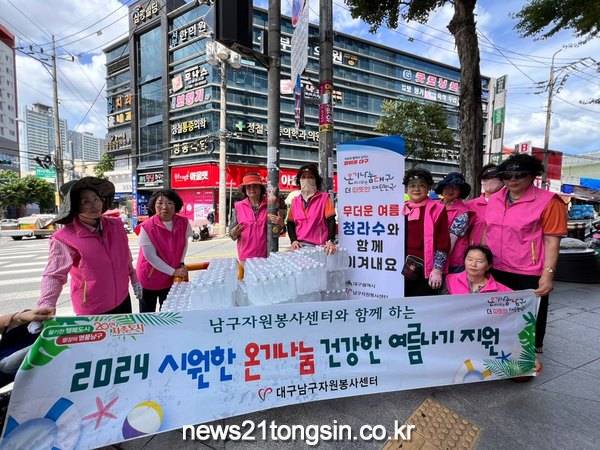 (뉴스21통신) 황태원기자 = 대구 남구자원봉사센터는 폭염 기간 시민들의 건강하고 안전한 여름나기에 기여하고자 7월 22일부터 많은 사람들이 모이는 장소에서 지역 주민들을 위한 ‘물 나누기’ 자원봉사활동을 실시한다고 밝혔다.