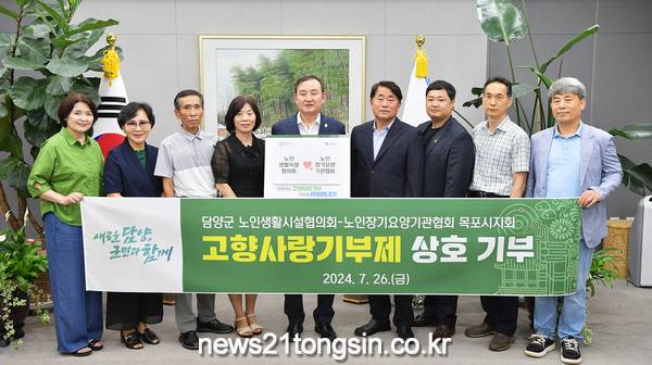 담양군노인생활시설협의회(회장 하종삼)와 한국노인장기요양기관협회 목포지회(회장 홍건숙)가 고향사랑기부금 상호기부에 동참했다.
