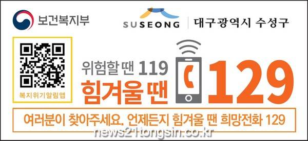 수성구는 오는 8월 발송 예정인 지방세 고지서를 통해 ‘복지위기 알림 앱’과 ‘보건복지부 상담센터 129’를 주민에게 알리고 복지위기가구 제보를 독려할 계획이다.