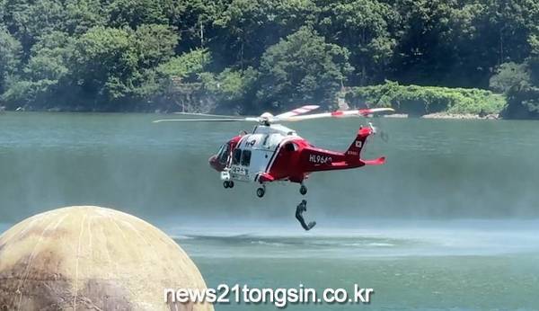 훈련 내용으로 ▲소방헬기 활용한 구조대원 투입 훈련, ▲소방헬기를 활용한 항공 수색 및 수중드론을 활용한 수상 수색 훈련, ▲개인안전장비 착용 및 안전사고 방지교육이 진행됐다.