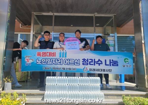 (뉴스21통신) 최우성기자 = 달성군 미래세대봉사단(단장 신상민)은 현풍읍·유가읍·구지면 노인일자리 참여 어르신들에게 생수(500㎖) 총 900개를 지원했다.