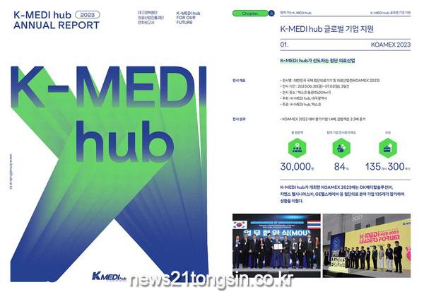 연차보고서는 ▲K-MEDI hub 소개, ▲2023년 주요 R&D실적 및 우수성과, ▲글로벌 기업지원 및 동반성장 사례, ▲총괄성과 등의 목차로 구성돼 케이메디허브의 성과를 빠짐없이 담았다.