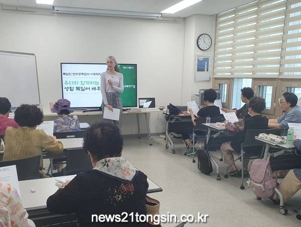 앞서 유타 씨는 독일어 일일 강사가 돼 수성이도학당에서 공부하는 어르신들에게 생활 독일어 회화를 가르치는 문해 수업을 진행하기도 했다.