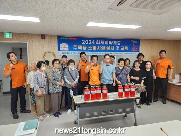 (뉴수21통신) 황태원기자 = 대구 남구 성명119안전센터 대원들과 대명6동 민간사회안전망(위원장 이상운)·지역사회보장협의체(위원장 변상태)·통우회(회장 황기진)는 지난 7월 26일, 지역 내 화재에 취약한 주민들을 위해 소방안전교육을 실시하고, 소화기 및 화재감지기를 설치하였다.