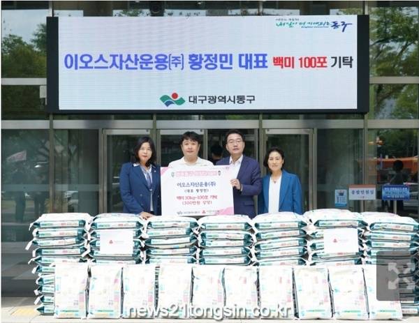 (뉴스21통신) 최우성기자 = 이오스자산운용(주)(대표 황정민)는 지난 5일 동구청을 방문, 어려운 이웃을 위해 사용해달라며 백미 10kg 100포(300만원 상당)를 기탁했다.