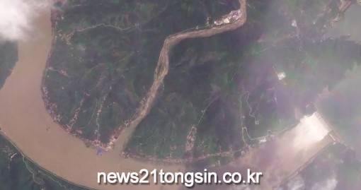 수문을 열어, 엄청난 양의 물을 쏟아내고 있는데, 지형적 특성상 저지대인 신의주로 모두 흘러가게 된다.