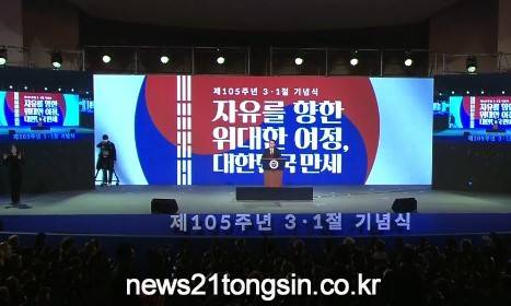 윤 대통령은 3.1운동 정신이 '자유 통일'을 통해 완성된다고 강조했다.