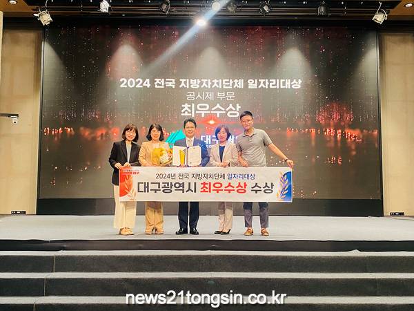 (뉴스21통신) 최우성기자 = 8일(목) 대구광역시는 고용노동부에서 주최하는 ‘2024년 전국 지방자치단체 일자리대상’에서 최우수상을 수상하는 쾌거를 거뒀다.