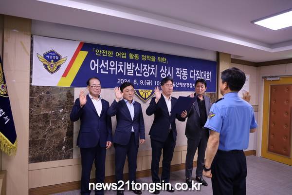 (뉴스21통신/우정석기자) = 울산해양경찰서(서장 안철준)는 8월 9일에 부울경 수협조합장들과 함께 어민들의 안전한 어업활동 정착을 위한「어선위치발신장치 상시작동 다짐대회」를 개최했다고 밝혔다.