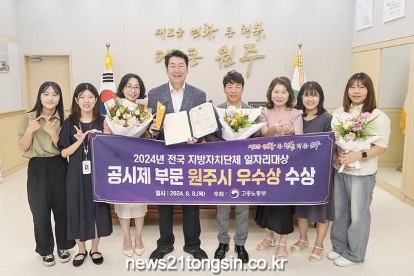 원주시는 8일 서울 양재동 엘타워에서 열린 고용노동부 주관‘2024년 전국 지방자치단체 일자리대상’시상식에서 공시제 부문 우수상을 받았다.