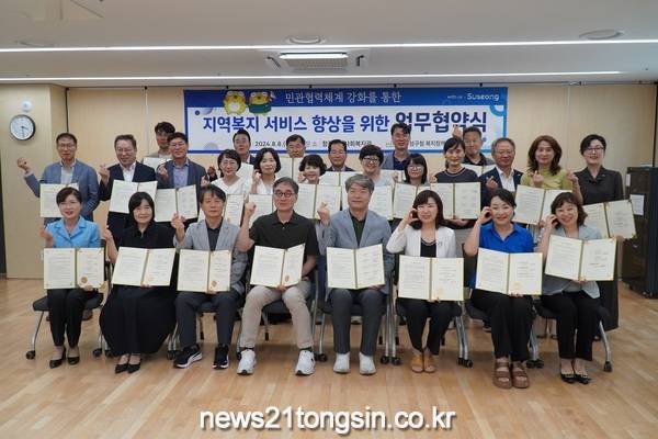 (뉴스21통신) 황태원기자 = 대구 수성구(구청장 김대권)는 지난 8일 23개 동 행정복지센터, 6개 종합사회복지관, 7개 노인맞춤돌봄서비스 제공기관과 지역복지 서비스 향상을 위한 업무협약을 체결했다.