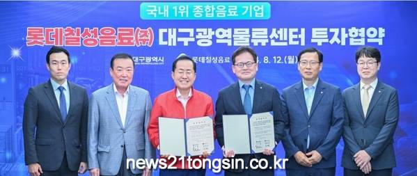 (뉴스21통신) 최우성기자 = 대구광역시(시장 홍준표)는 8월 12일(월) 오후 3시, 대구시청 산격청사에서 롯데칠성음료㈜(대표이사 박윤기)와 ‘대구광역물류센터 건립’을 위한 투자협약을 체결했다.