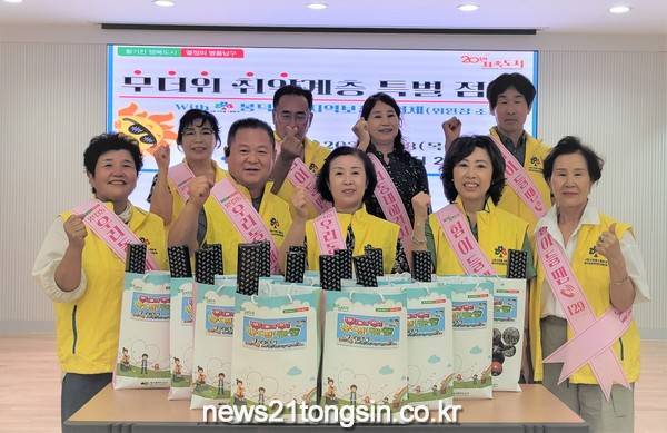또한, 봉덕3동 통우회(통우회장 류충호)는 폐지 줍는 어르신 14가구에 쿨토시와 쿨스카프를 전달하였다.