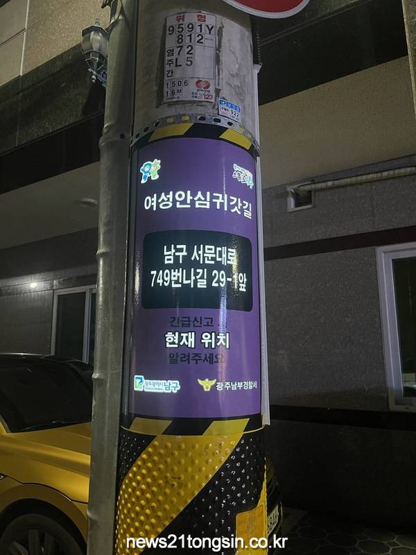 현재 남부경찰서는 주월동 푸른길 도서관 뒤를 비롯해 양림동 행정복지센터 주변, 중국 총영사관 뒤 등 관내 11곳을 여성 안심 귀갓길로 지정해 운영하고 있다.