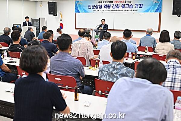 군위군은 지난 13일 오후 2시 삼국유사교육문화회관 4층 여성회관 회의실에서 김진열 군위군수와 대구시 군부대 이전 군위군 추진위원회 회원 50여명이 참석한 ‘민군상생 역량 강화 워크숍’을 개최했다.