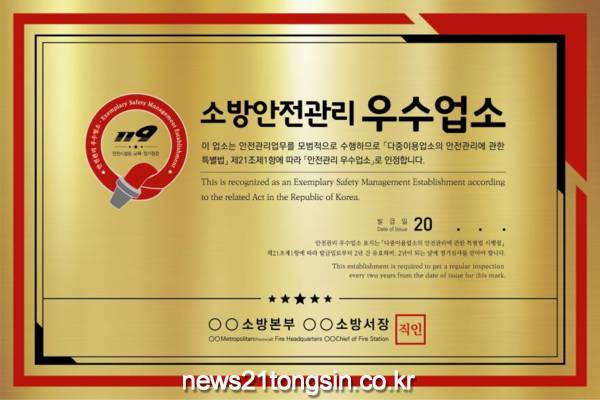 김영일 방호예방과장은 “안전시설이 적정하게 유지·관리되고 시설관계인의 안전의식과 안전교육 등이 충실하게 이행되는 우수 다중이용업소가 더 많이 선정될 수 있도록 최선을 다하겠다”고 말했다.