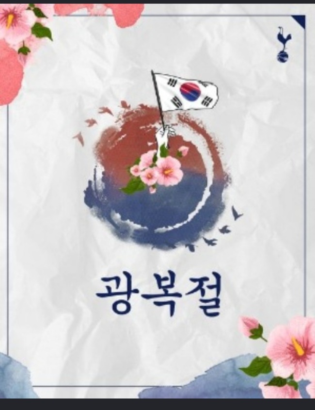 토트넘은 15일 한글로 쓴 “대한민국의 주권을 되찾은 광복 79주년을 진심으로 축하합니다”라는 문구와 함께 태극기, 무궁화, 태극 문양 등을 담은 이미지를 SNS에 게시했다.