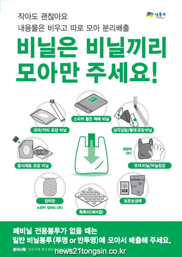 서울 성동구(구청장 정원오)는 생활쓰레기 감량을 위해 '폐비닐 분리배출 활성화' 사업을 본격 추진한다고 밝혔다.