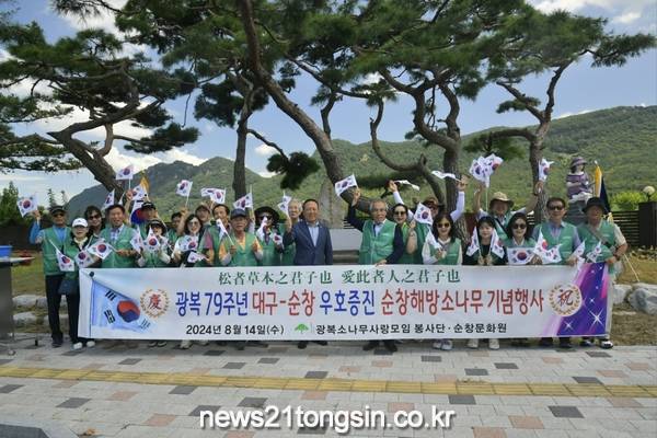 (뉴스21통신) 황태원기자 = 광복 79주년을 맞아 전북 순창에서 이색 영호남 우호 증진 행사가 열렸다. 이런 만남은 순창문화원 주최로 광복 79주년 맞이 ‘해방소나무 기념행사’가 순창 적성초등학교에서 열려 대구에서 광복소나무사랑모임 봉사단(이하 봉사단)에서 축하차 찾으면서 이루어졌다.